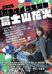 EVENT イベント・出展情報の一覧です。 2026年1月4日 カナイメグ 忘年会イベント開催のお知らせ 2025年3月9日 カナイメグ生誕祭2025【富士山花火 VS スピードウェイ 2025 】 2025年1月17日 カナイのリアル二次会ちゃん〜モータリスト日本酒会〜 2024年10月2日 【11/9】カナイのランチちゃん@バイカーズパラダイス南箱根 2024年4月24日 【ENCOUNTER】カナイメグ写真展絶賛開催中!
